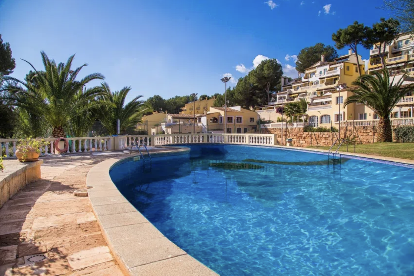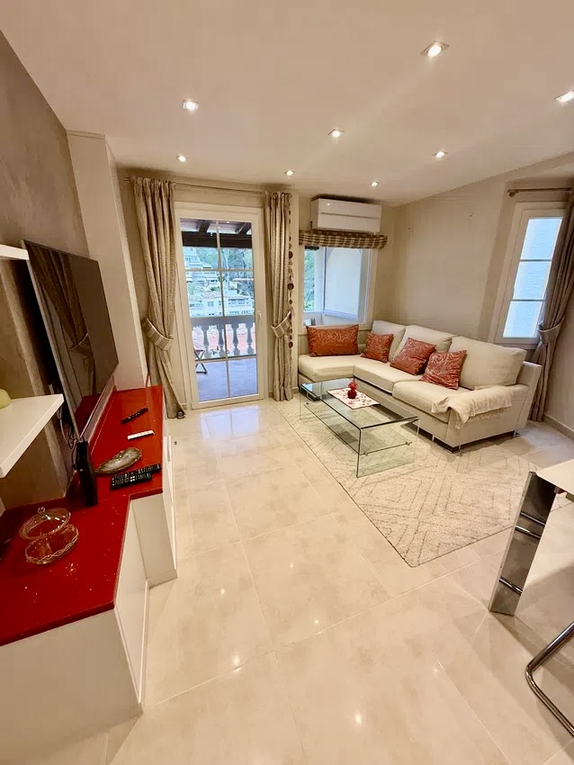 Geräumige, helle Wohnung mit West- Orientierung – komplett renoviert – mit 75 m2 Wohnfläche und sehr großer Terrasse zu vermieten. Sie liegt 5 Minuten zu Fuß vom Boulevard von Paguera entfernt und verfügt über 2 Doppelschlafzimmer, 1 Badezimmer mit Dusche, ein großes Wohn-Esszimmer und eine Küche mit Frühstücksbar. Die Wohnung ist mit modernen und hochwertigen Möbeln eingerichtet und die Aussen- Türen und Fenster sind doppelt verglast. Es gibt mehrere Klimageräte, Fussboden- heizung und Einbauschränke. Die Wohnanlage verfügt leide rnicht über einen Aufzug, aber es gibt einen Gemeinschaftspool mit Terrassen und man kann in dieser Gegend gut parken. Einkommensnachweis unabdingbar. Kaution: 2 Monate. Haustiere sind leider nicht erlaubt.